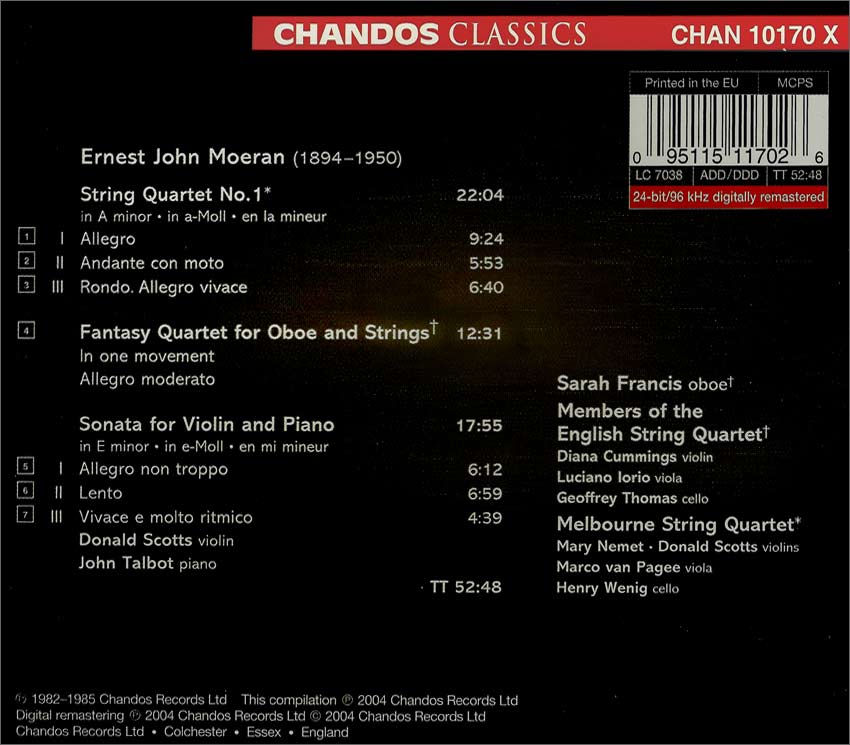 String Quartet No.1 in A minor, Fantasy Quartet, Sonata for Violin and Piano in E minor - CHANDOS CHAN 10170